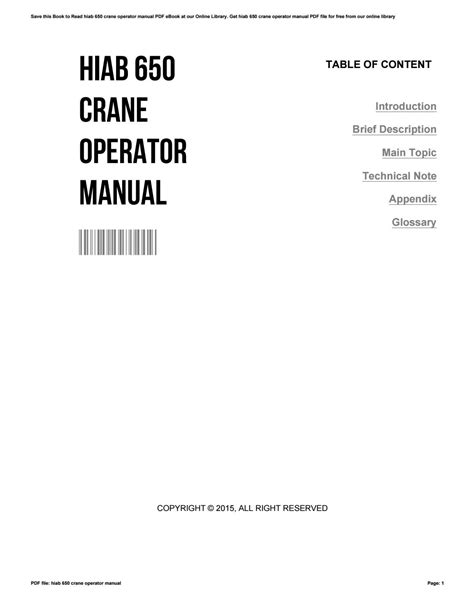 Download Hiab 650 Crane Operator Manual Kindle Editon ManyBooks